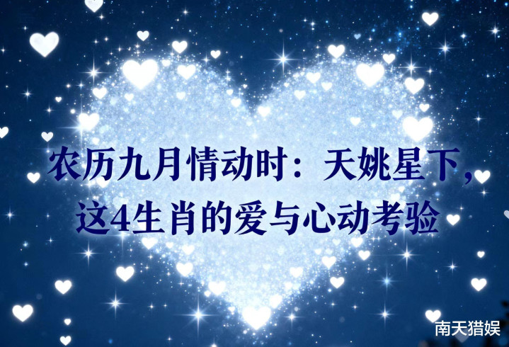 当桂花的甜香漫过街角,农历九月(公历 10 月 21 日至 11 月 19 日)悄然抵达。这段日子里,被视作情感催化剂的天姚星气息渐浓,这颗紫微斗数中的乙级星,像一阵温柔却暗藏力道的风,吹得人心湖泛起涟漪 —— 它会让人更敏锐地感知善意,也容易让情绪在不经意间脱缰。对龙、羊、鸡、猪这四个生肖来说,这个月注定是情感的 “活跃期”,有相遇的惊喜,有心动的雀跃,也少不了理智与感性的轻轻拉扯。