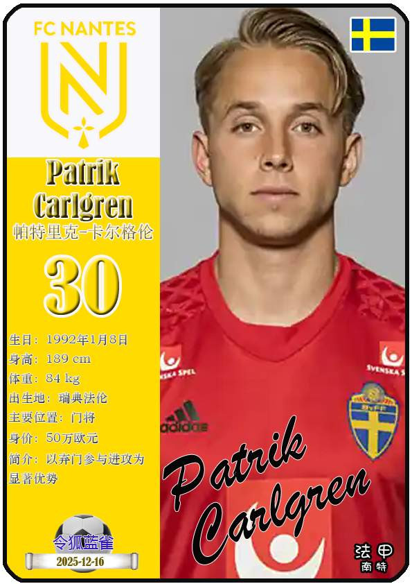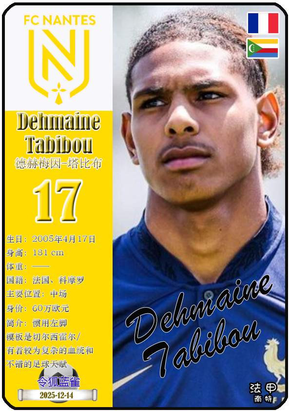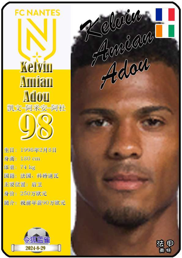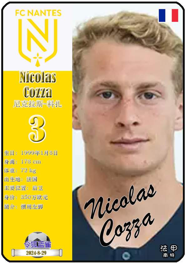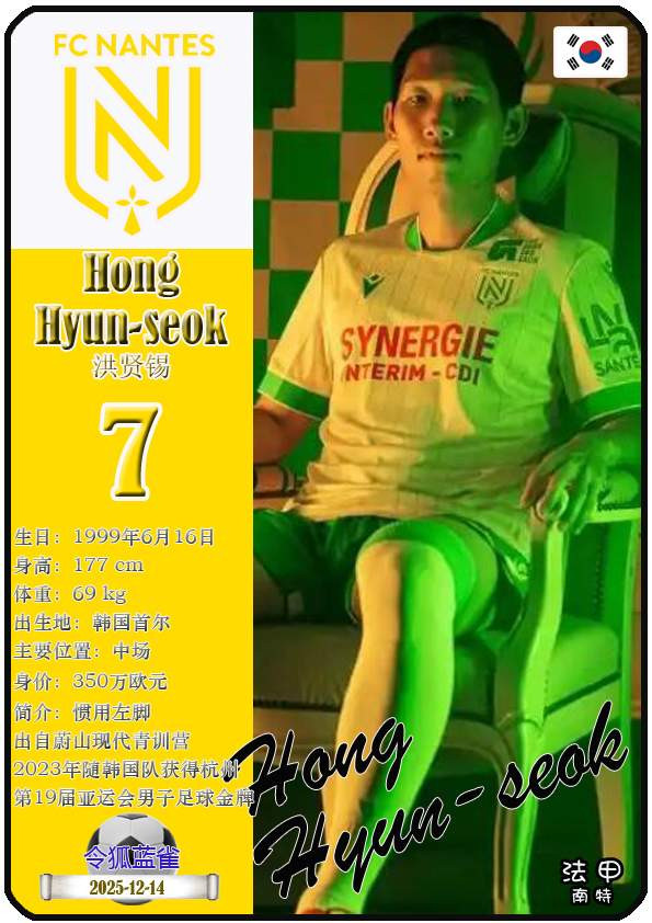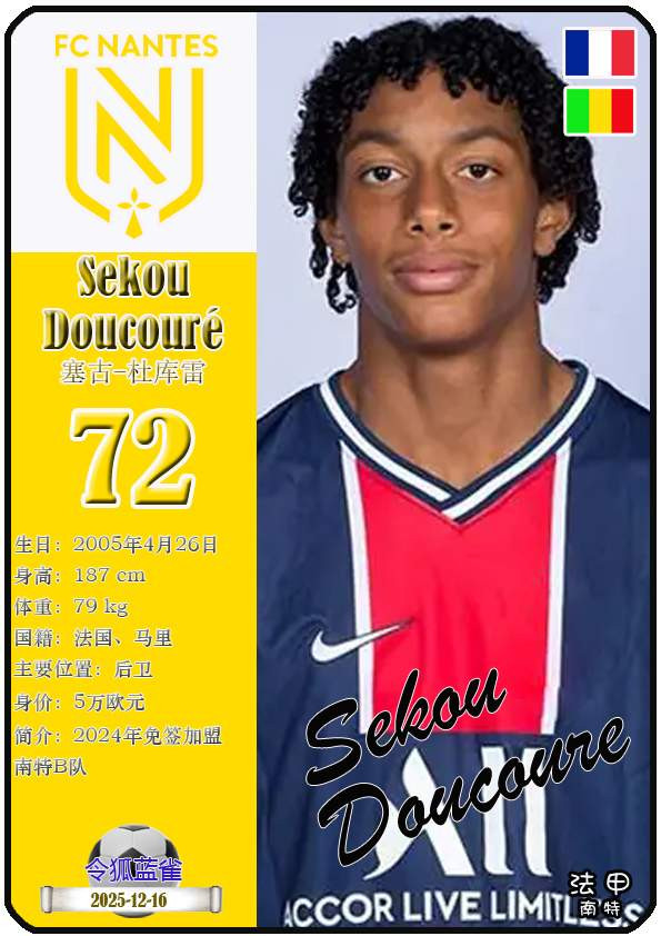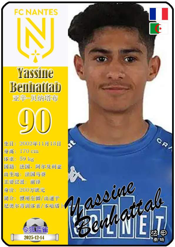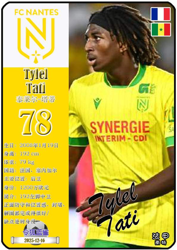 法甲南特足球俱乐部成立于1943年,距今已有82年历史。截至2025年12月17日,球队主教练是艾哈迈德-坎塔里,队内拥有球员马希斯-阿布林、洪贤锡、巴赫雷巴-吉拉西等。本期以球星卡的形式展示目前法甲南特足球俱乐部的21名球员(按球衣号码排序):1 安东尼-洛佩斯
