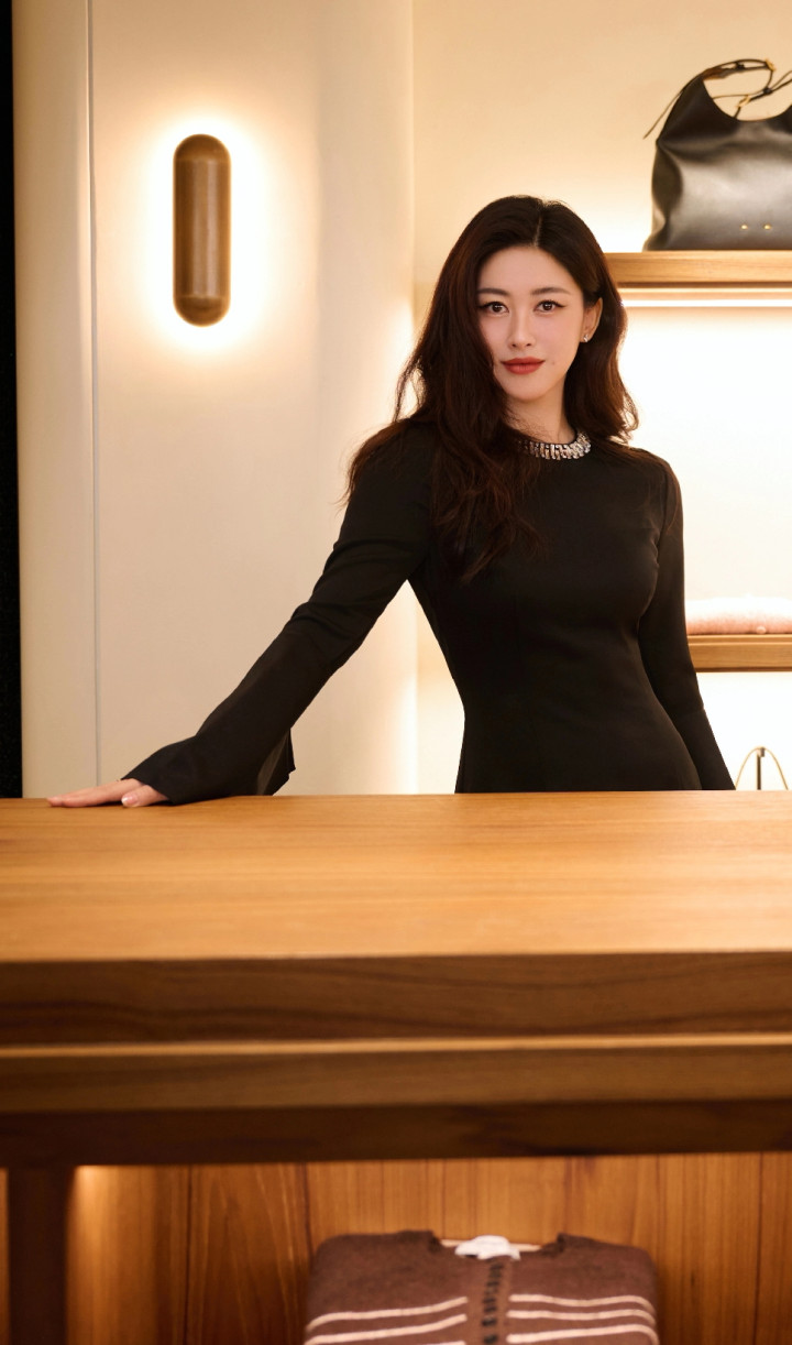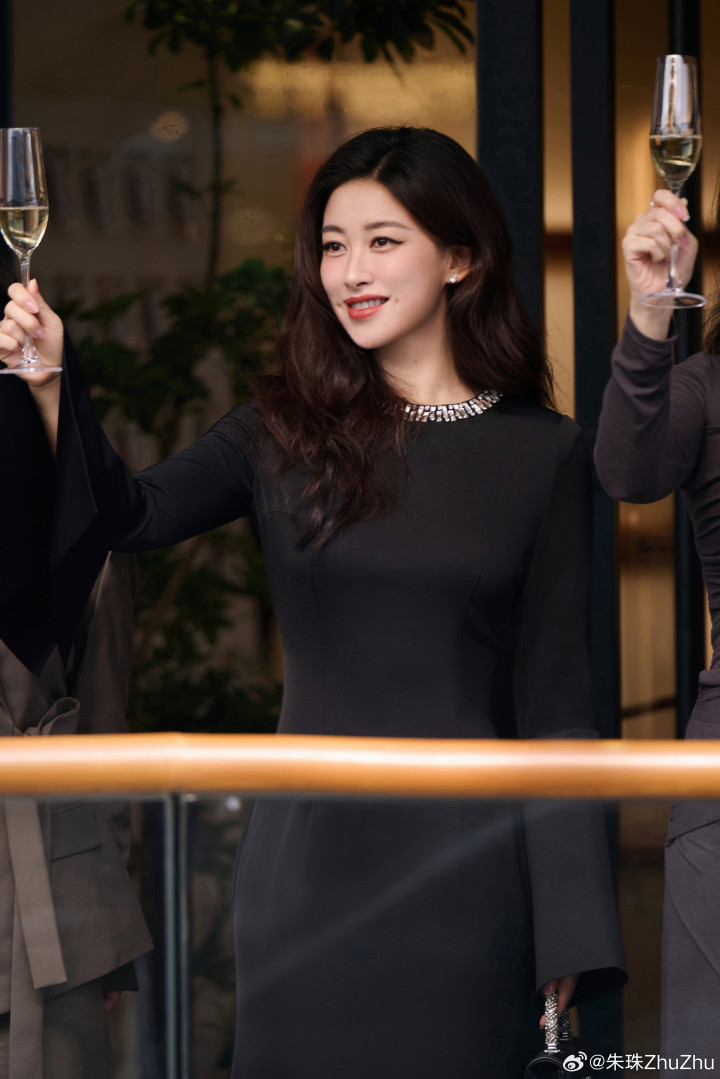 朱珠分享活动美照, 黑色长裙包裹全身, 一举一动尽显优雅