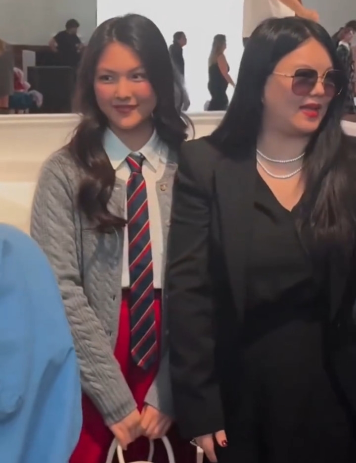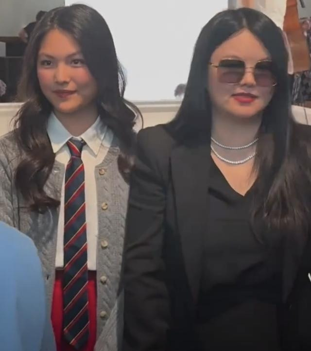 时装周之际,李湘也来和女儿伦敦看秀了,李湘身穿黑色套装,富态十足也气势十足,15岁的王诗龄身穿灰色针织外套,搭配红色半身裙,配上蓝红相间领带,虽是一身学院风装扮,但还是略显成熟,也越来越像李湘了。
