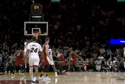 第二个加时赛最后时刻,米切尔超高难度三分绝平,随后剩0.4秒威金斯空接命中绝杀。