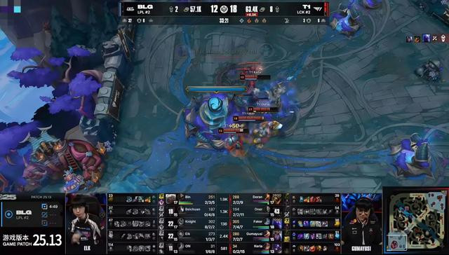 第二局比赛,BLG阵容构建同样陷入了劣势,中下两路依旧没有线权,Doran前期的开团和决策出现失误,BLG得以确立一定的优势。来到中期,BLG的分线处理出现严重失误,竟然选择让没有TP的兰博在上路带线,导致无法争夺下半区视野,T1反而掌握了小龙节奏的优势!关键的厄塔汗团战之前,BLG站位出现失误,Doran奥恩大招命中数人,配合赵信的进场和双C输出,T1团战击溃BLG,一波扭转了比赛形势,BLG阵容后期输出匮乏,不具备翻盘能力,最终再次落败,BLG运营和决策堪称灾难。